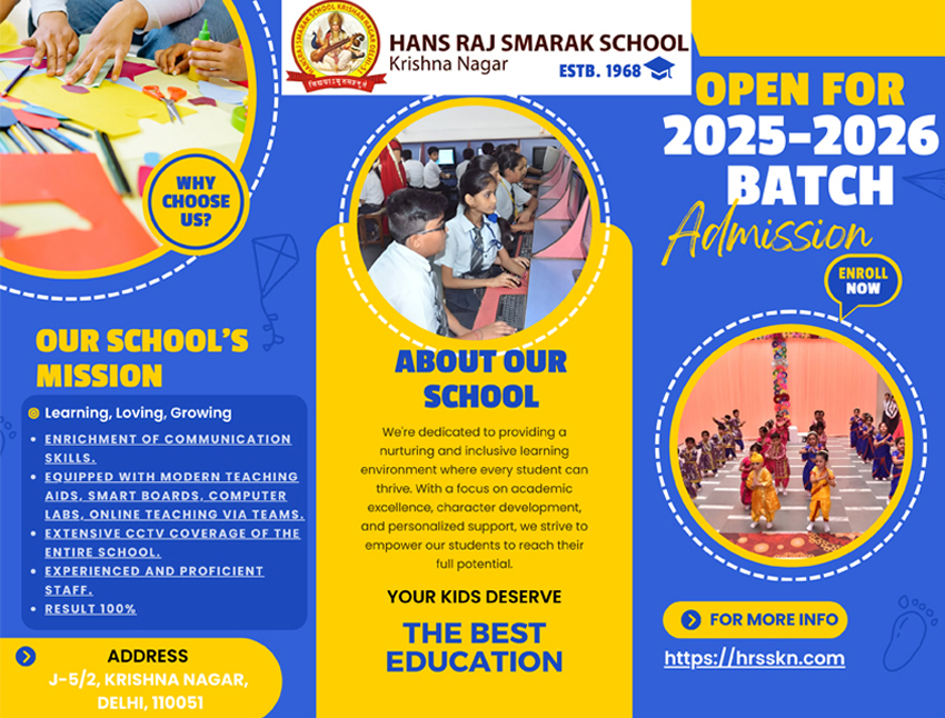 HANS RAJ SMARAK SCHOOL has been dedicatedly serving the students by imparting quality education and inculcating rich ideals in them for more than three decades. Turning the pages in the past, seems a journey through time, our achievements and aspirations, our struggle and strength to scale the heights. All these years have been full of activity and development from where we have started and where we have reached i.e from a single classroom to the beautiful building with all the latest infrastructure at KRISHNA NAGAR to other branch at Dilshad Garden. We have grown and are growing still, our venture has been to conjoin the healthy traditions with new knowledge..